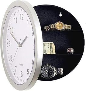 - DISCRETE STORAGE: Keep jewelry, extra cash, your bank cards or other small valuables safe in this fully functioning clock. Behind the face of this simple looking décor item is a secret compartment with 3 shelves where you can hide items.